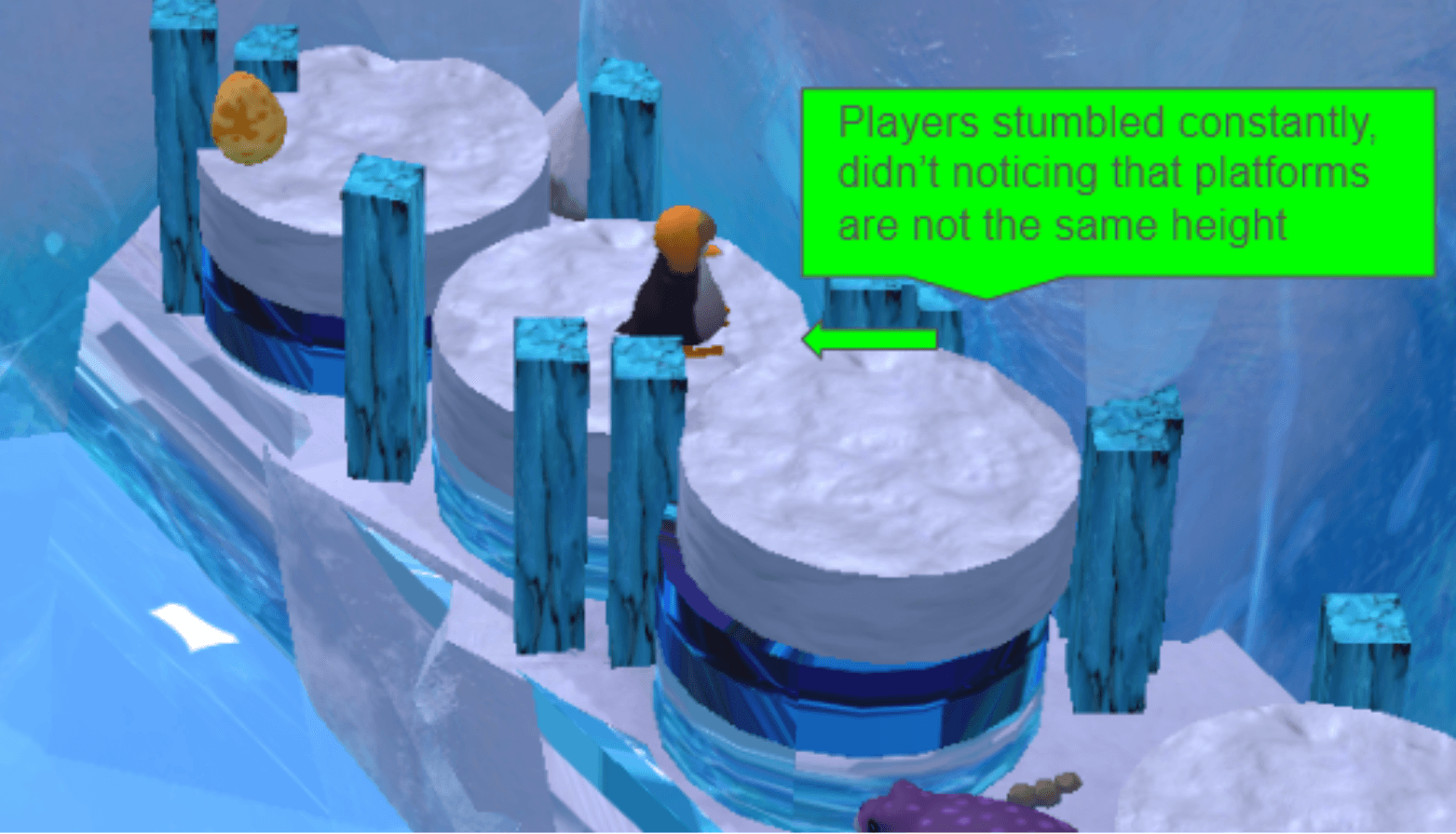 But the final version of this puzzle (below) was totally removed because the camera had to be positioned too far from the player, which negatively affected control precision, especially when carrying the egg.