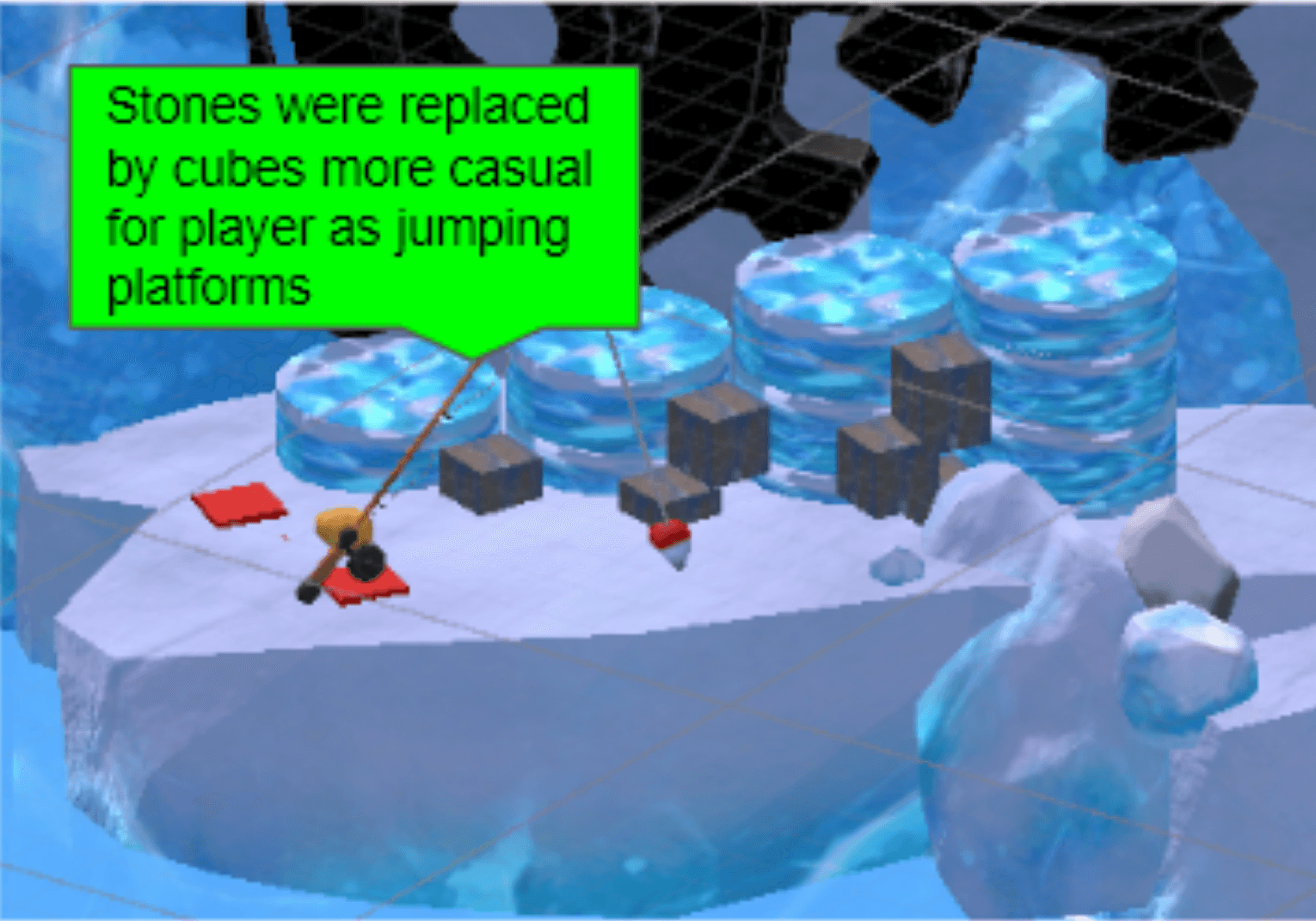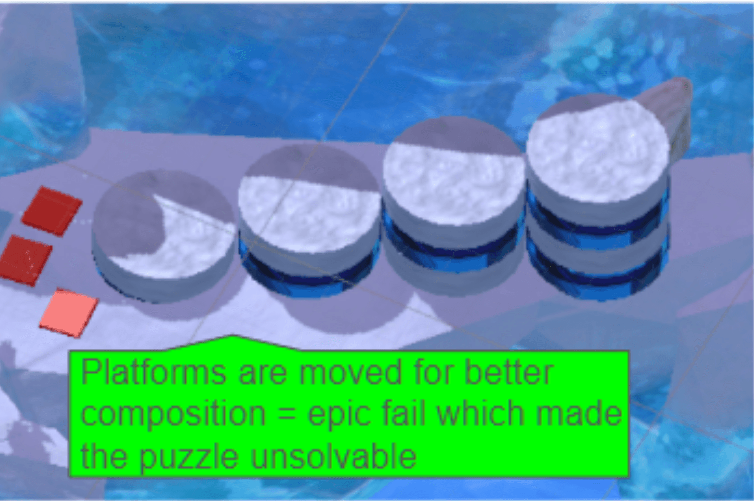 To resolve this issue, I iterated on puzzle orientation and camera-facing angles to improve readability of both the puzzle structure and platform height differences.