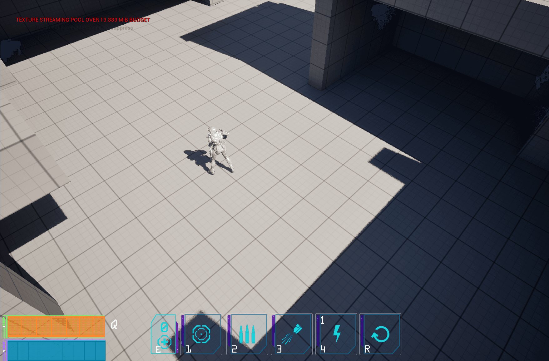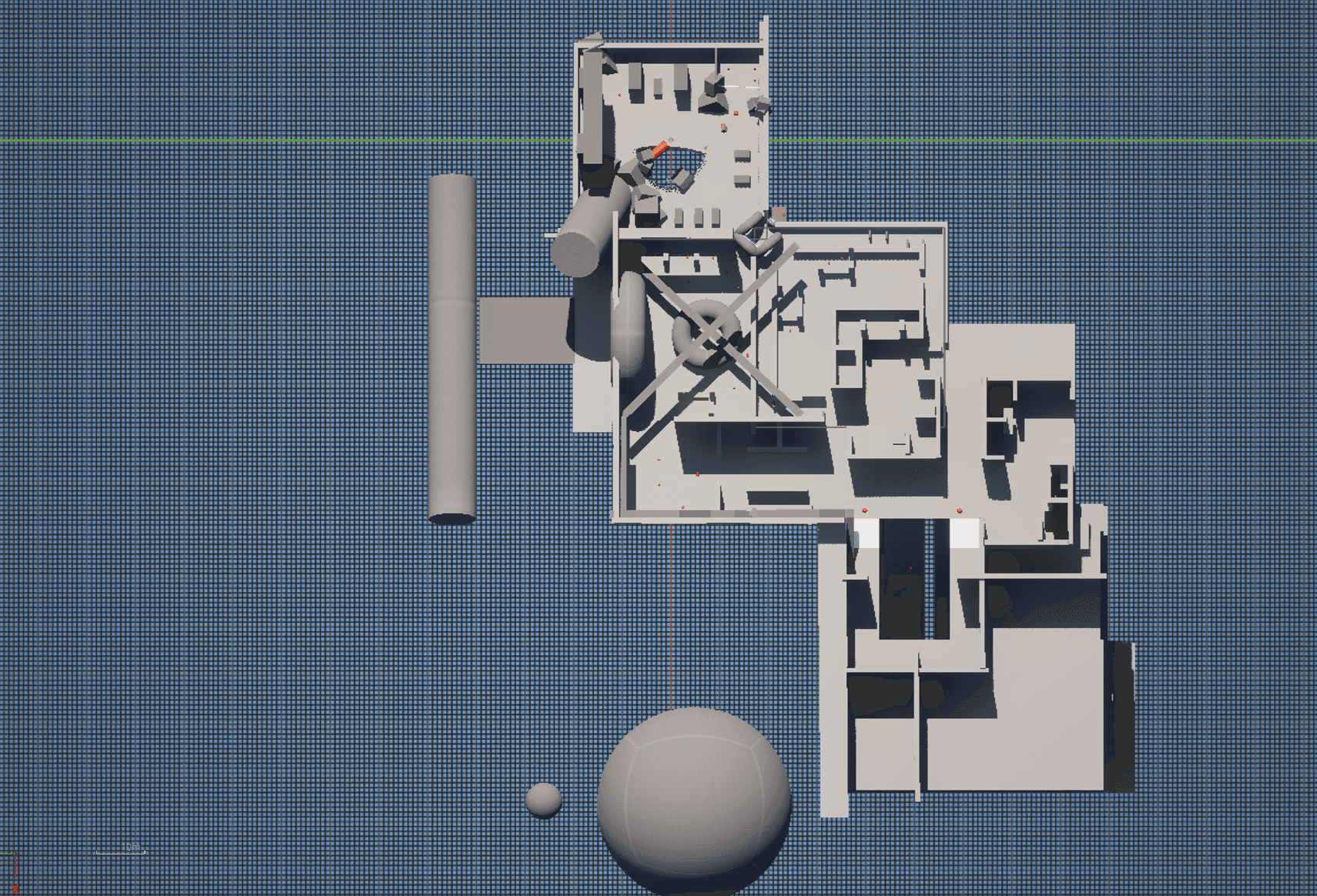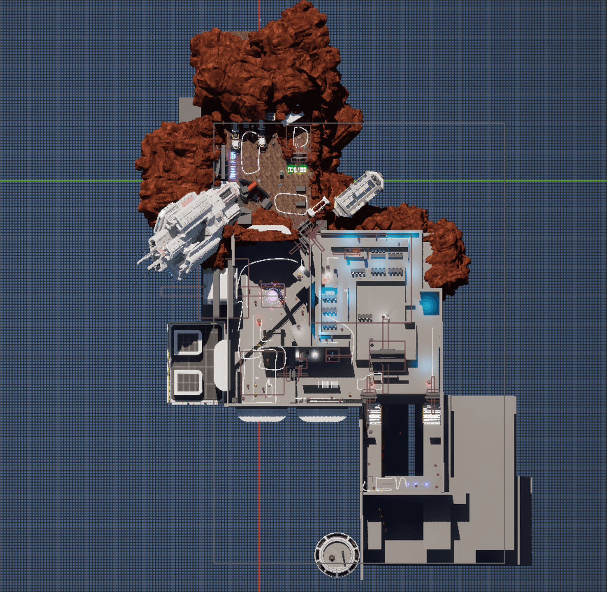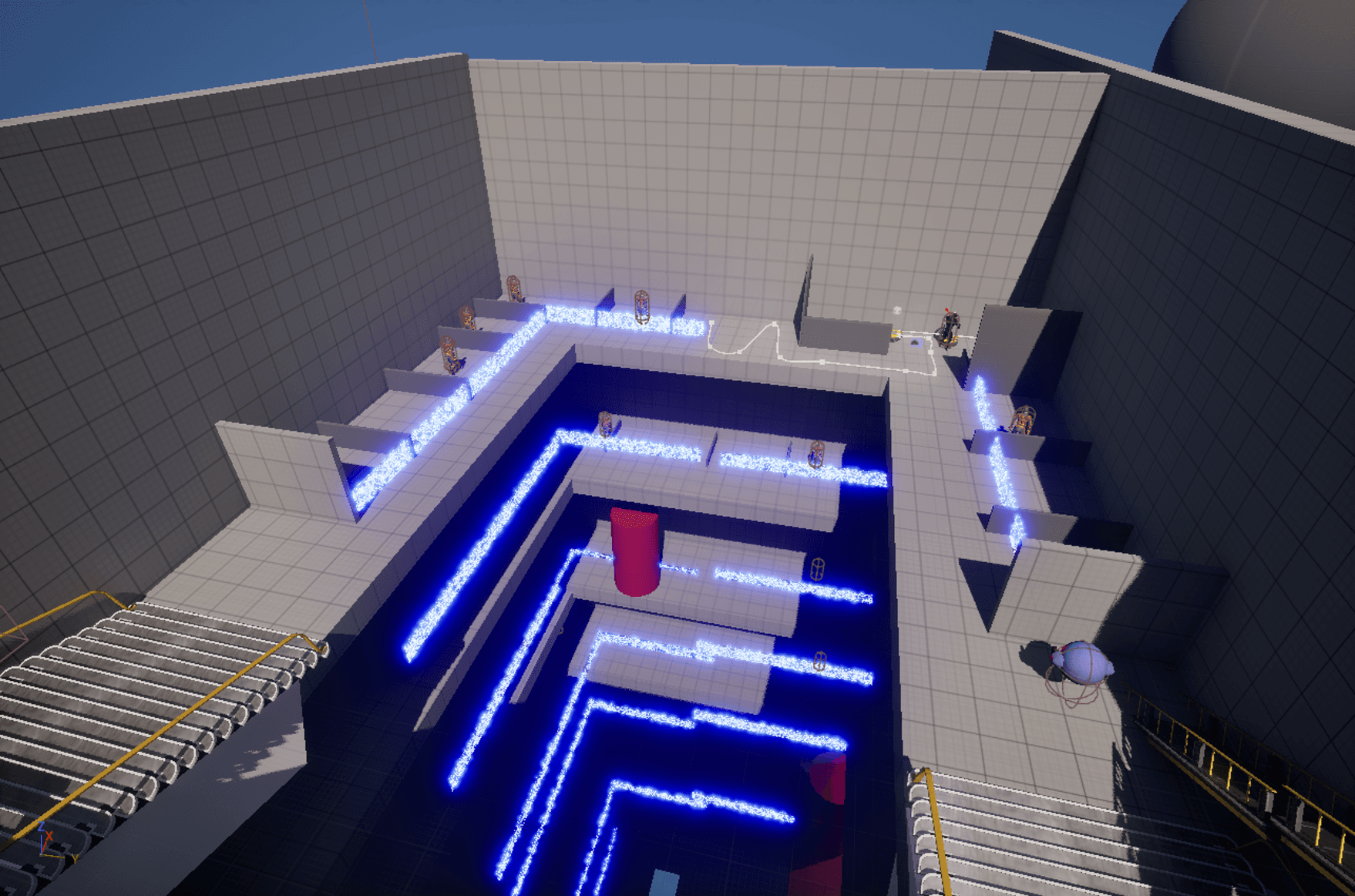 In early layouts, the prison structure was placed centrally, dominating the space. Under the fixed tilted camera, this collapsed the perceived scale, caused frequent occlusion, and competed visually with combat spaces, making the level harder to read.