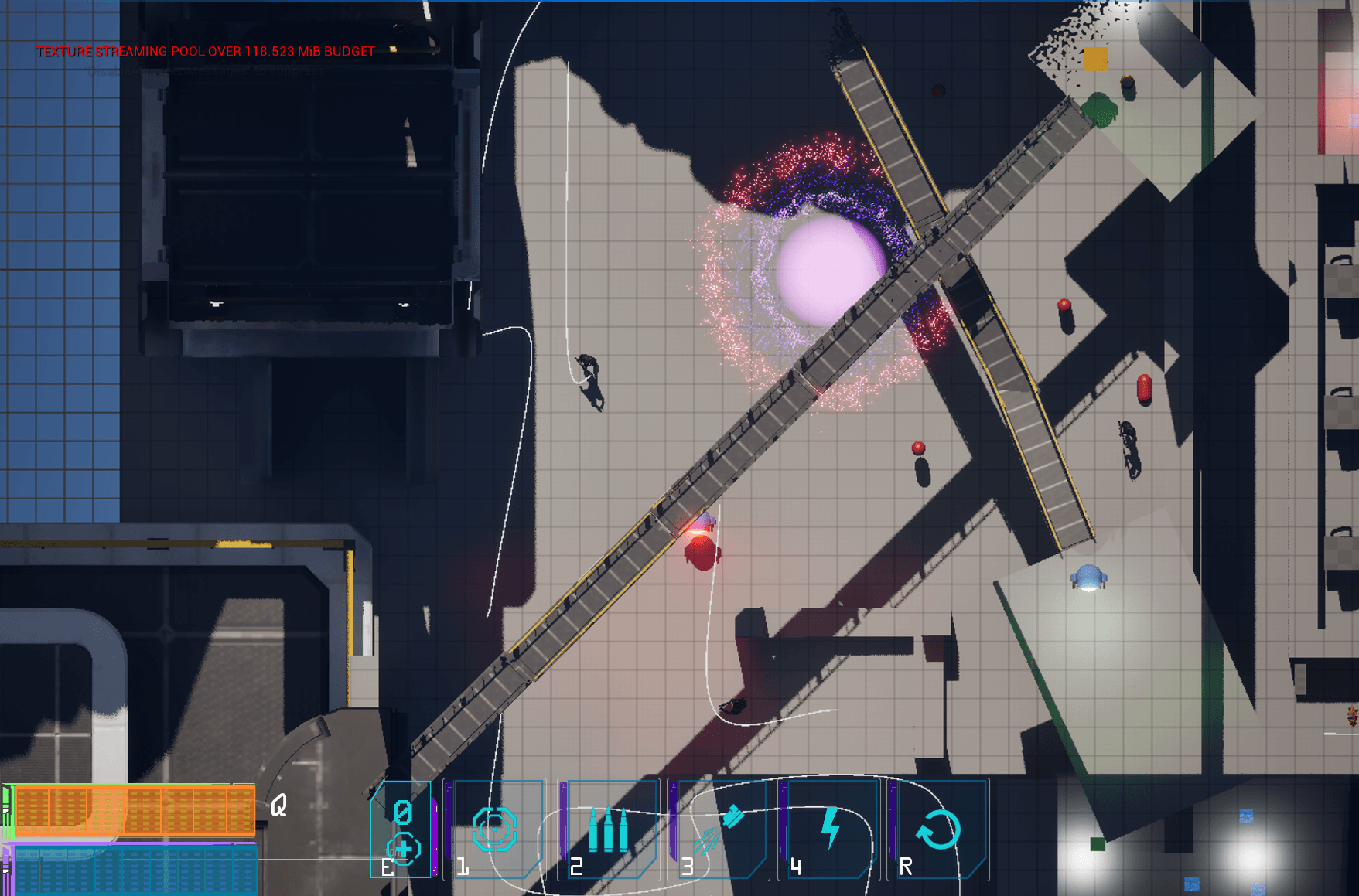 - Grenade effects communicate blast radius and timing.