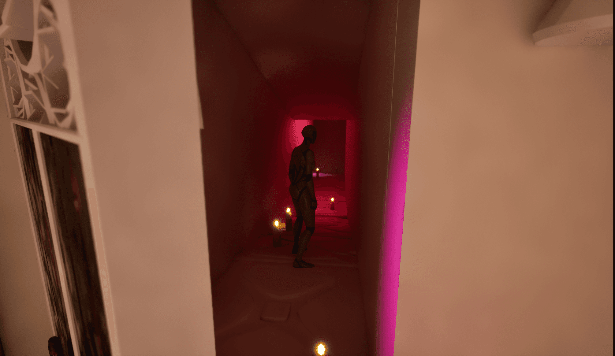 The goal was to lead the player through space using light, value contrast, and color repetition rather than explicit markers.
