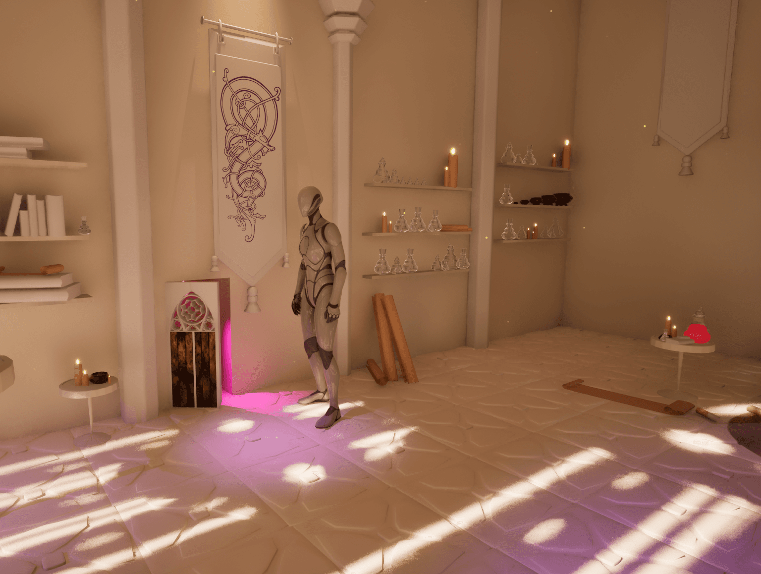 Although no gameplay mechanics are implemented, the space was structured around a clear progression idea:
